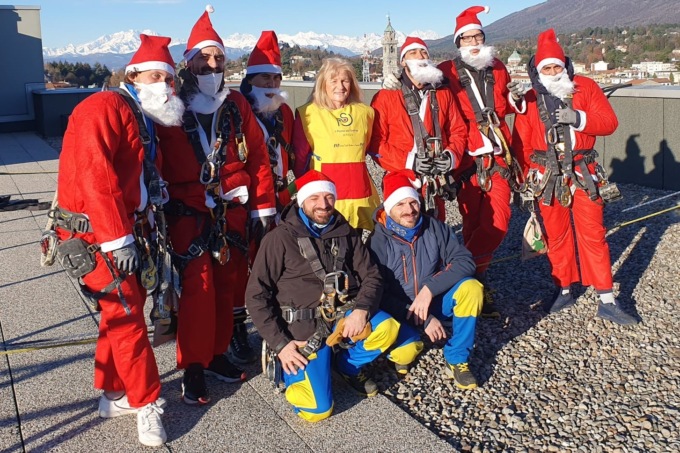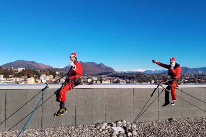 Alle 8 del mattino il tetto dell’Ospedale Del Ponte si è animato di strani personaggi che trafficavano con corde e imbragature. Terminato di far scendere funi verso il basso, si sono vestiti da Babbo Natale e con grande abilità e coraggio, si sono calati verso le finestre delle stanze dei bambini ricoverati in Pediatria.