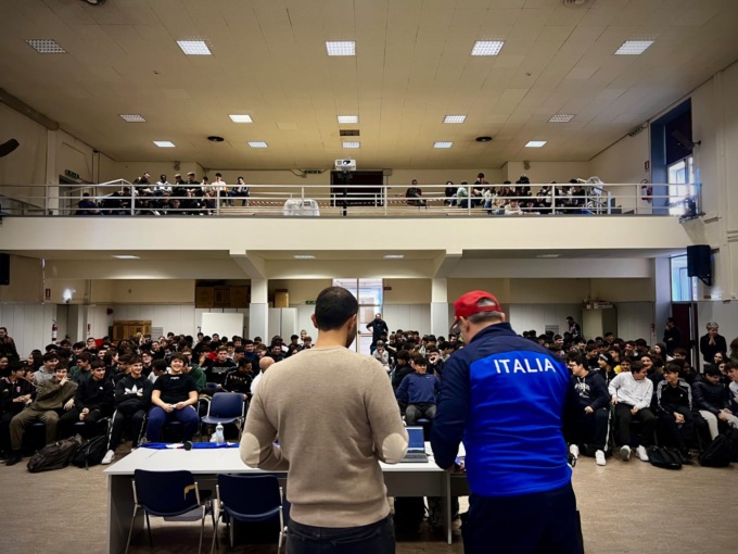 Le classi seconde (circa 250 studenti) hanno infatti partecipato ad un incontro, nell’aula magna dell’istituto, con due importanti atleti paralimpici: Daniele Cassioli, sciatore nautico cieco dalla nascita, che ha vinto decine di premi e titoli a livello internazionale, e Santino Stillitano, veterano dei Giochi paralimpici invernali, che ora si sta preparando per Milano-Cortina 2026.