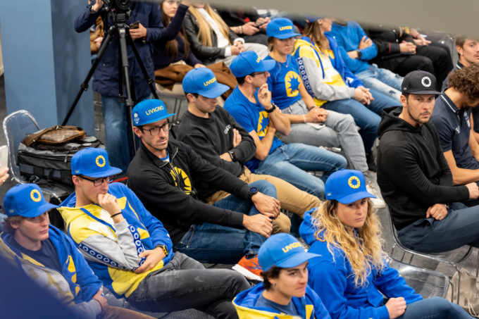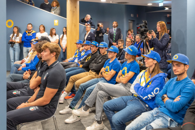 Seduti in prima fila, gli atleti di varie disciplineche orbitano su Livigno: Giacomo Bormolini (Telemark), Michele Bormolini (auto su ghiaccio), Niccolò Colturi (Snowboard Cross), Nicolò Cusini (Sci di fondo), Jole Galli (Skicross), Giulia Molinari (Triathlon), Veronica Silvestri (Sci di fondo).
