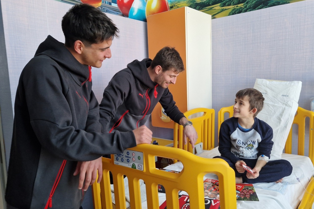 I due giocatori del Milan hanno fatto visita ai piccoli pazienti dell'Ospedale Del Ponte