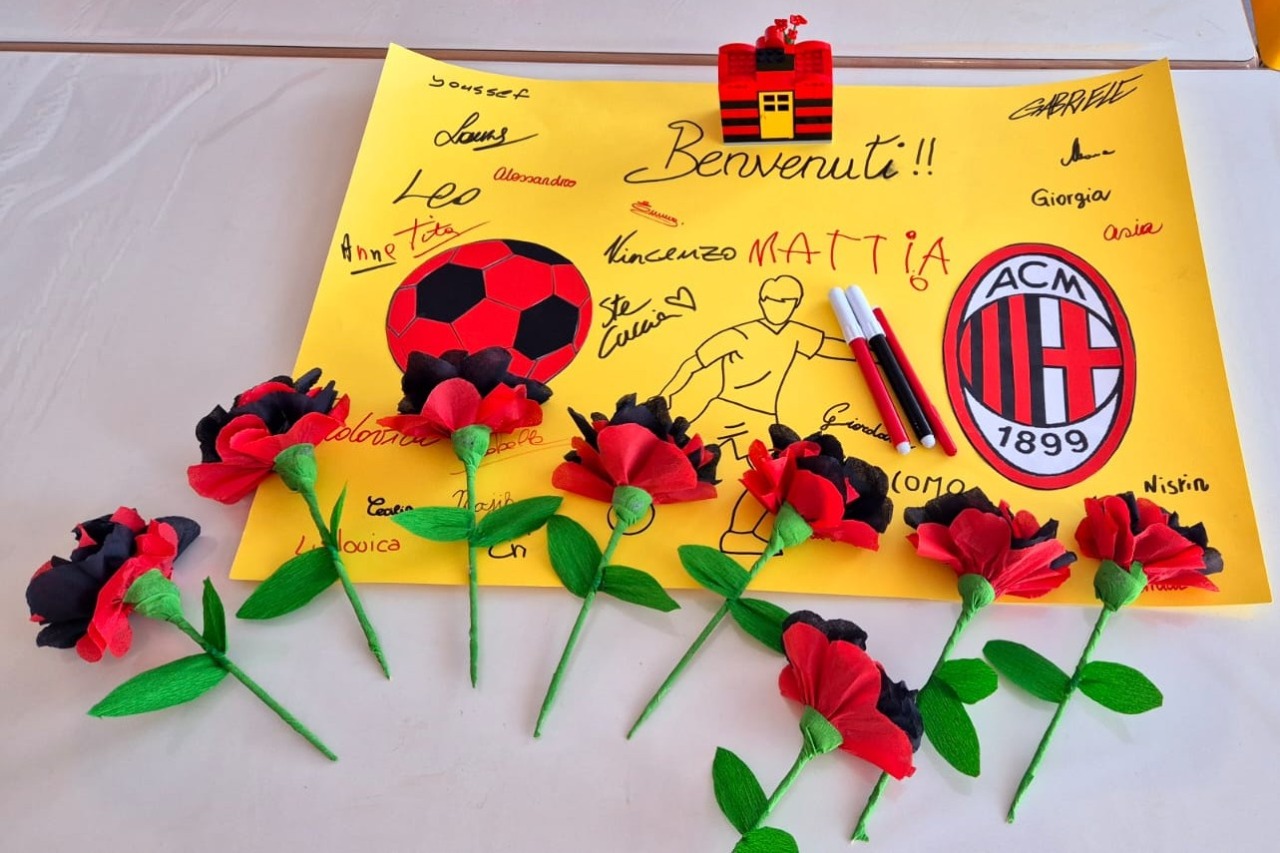 I bambini hanno preparato, oltre a fiori di carta rossi e neri, un colorato cartellone di benvenuto con le loro firme da donare ai calciatori che a loro volta hanno regalato la foto della squadra da loro firmata, dando vita così a un simpatico scambio di autografi. Il cartellone sarà esposto nello spogliatoio della squadra di serie A.