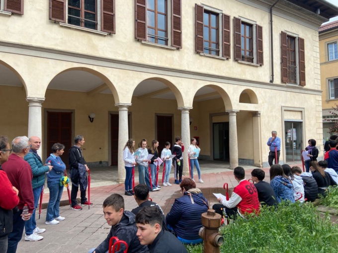 Le classi terze dell’ IC “Galilei”, insieme ai docenti accompagnatori, alla Dirigente Scolastica e ai rappresentanti dello SPI CGIL di Tradate, Enrico Mantegazza e Mario Santoro, e insieme al Segretario provinciale della FLC di Varese Michele Maglione, hanno dato, così, il via a un’iniziativa volta a creare ponti tra pensionati, giovani e territorio e a valorizzare la ricerca della cultura e della memoria delle strade intitolate a partigiani e combattenti.