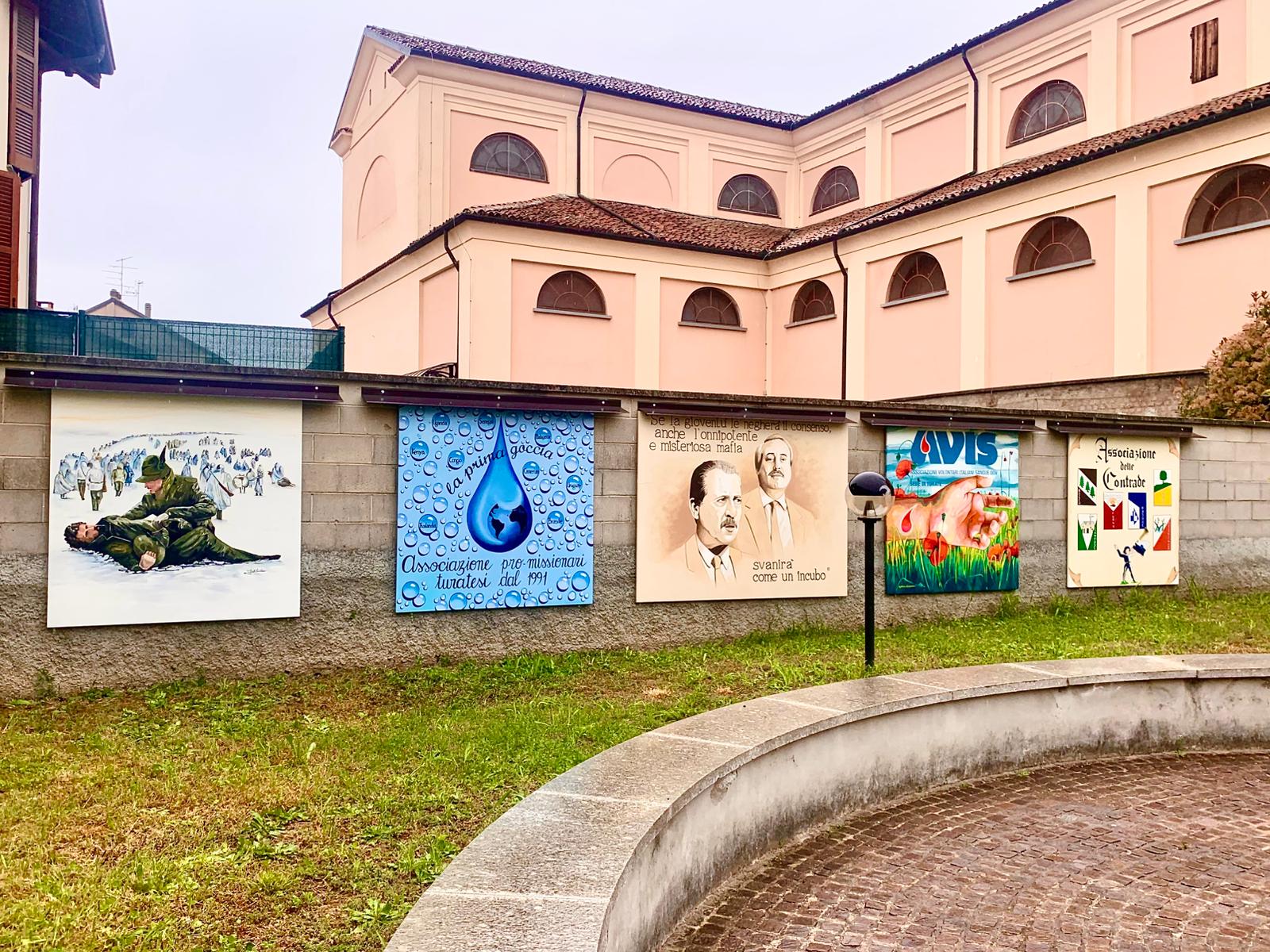 Dopo il discorso del sindaco Alberto Oleari, sono stati inaugurati nel cortile anche i pannelli artistici che rappresentano il Comune e le quattro associazioni ospiti, realizzati dagli artisti Fabrizio Vendramin, Massimiliano Fusetti, Elena Turconi e Rosanna Caffarella. L’assessore Loris Guzzetti ha svelato che il pannello comunale è stato dedicato alle figure dei magistrati Paolo Borsellino e Giovanni Falconi, simbolo di legalità, giustizia ed esempio per tutti.