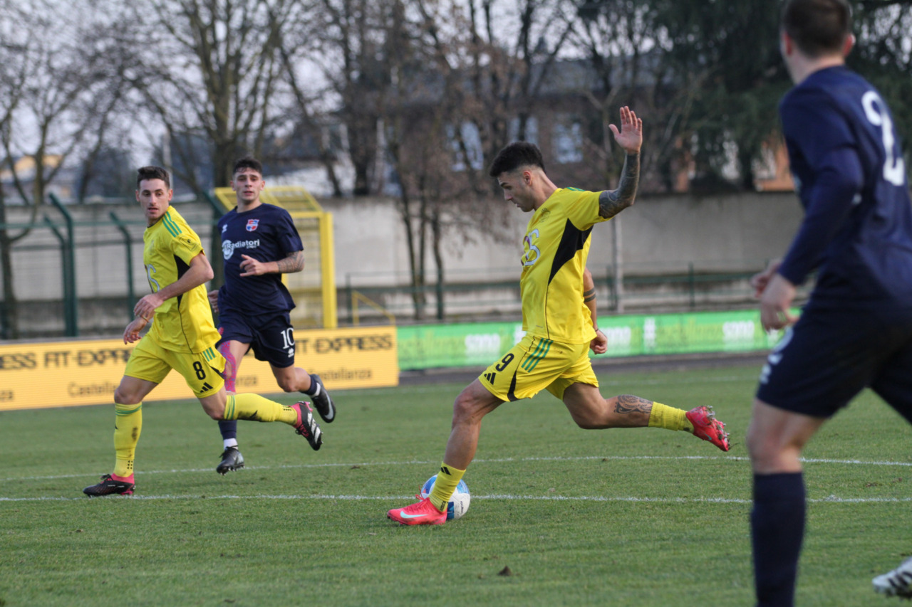 Castellanzese che sfiora la rete dopo il ventesimo con un bel colpo di testa sotto misura di Boccadamo – ottimamente servito da corner di Chessa – ma Cavalieri è attento e riesce a salvare sulla linea, senza che il pallone entri totalmente in porta.