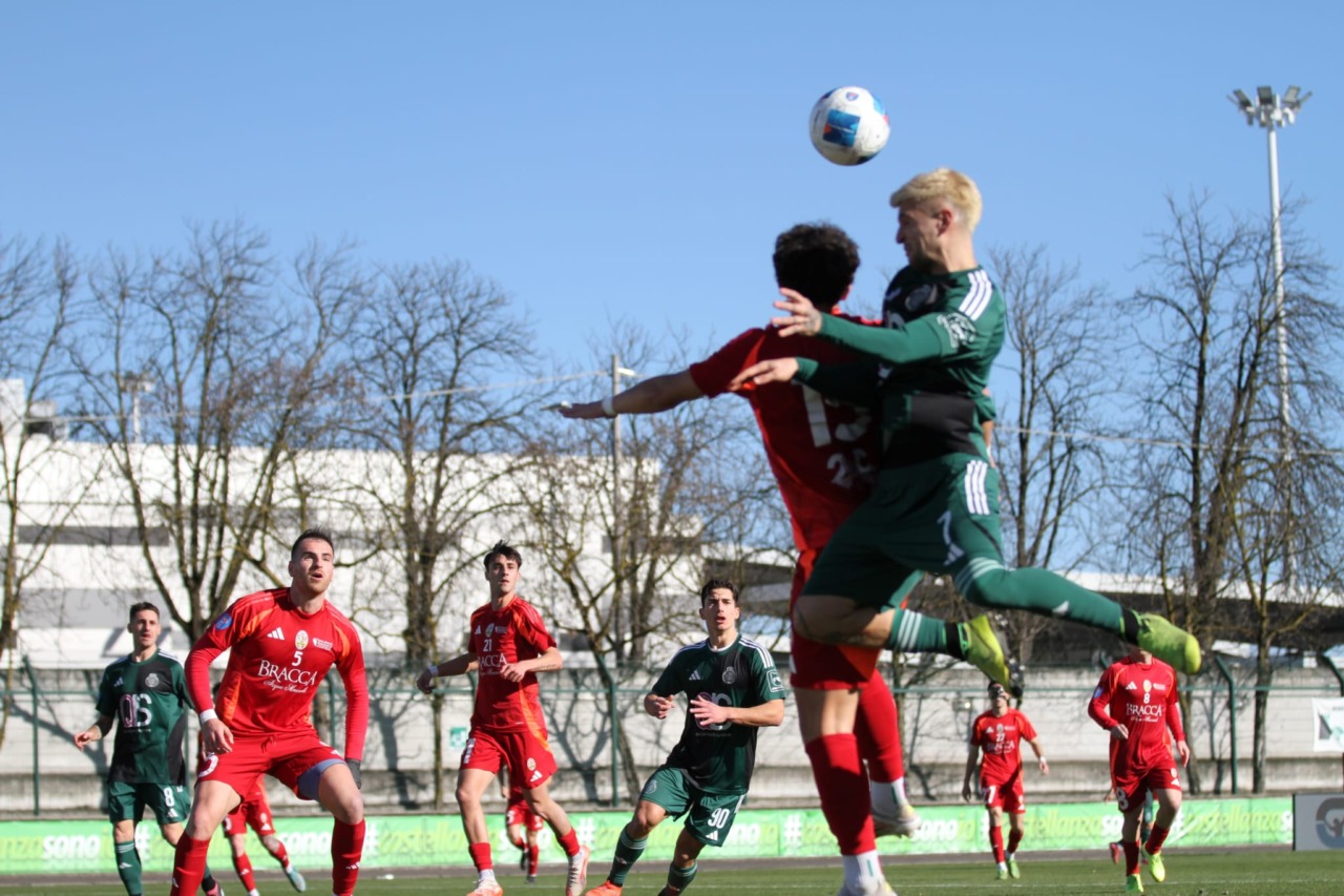 Secondo tempo che vede gli ospiti provare a farsi pericolosi in avanti sia con Semprini sia con Ravasi, le cui conclusioni vengono ribattute da un attento Giroletti, bravo a farsi largo tra le maglie avversarie e nelle mischie che si creano dalle sue parti. I neroverdi, spinti dal proprio pubblico, sfiorano il gol al quarto d’ora con un’altra bella conclusione di Rusconi, nuovamente respinta da Passeri. La rete è solamente rimandata di alcuni minuti, visto che a dieci dalla fine il raddoppio è servito: Oleoni scappa sulla destra e serve al limite Foglio – subentrato a Vernocchi -, con il tiro del numero diciassette neroverde che sbatte sul palo, palla che entra in possesso di Castelletto, bravissimo a controllare, dribblare Valenti e concludere sul palo più lontano della porta giallorossa.