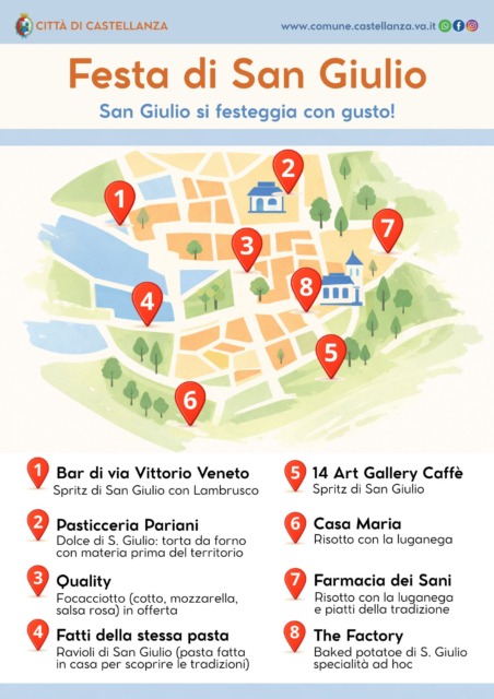 E così, tra uno “spritz di San Giulio”, il classico risotto con la luganega e dolci creati ad hoc per l’occasione, la scoperta – o riscoperta – della tradizione passa anche attraverso il palato e il gusto. Un percorso gastronomico diffuso che rende la festa ancora più partecipata e coinvolgente. Il Comune, oltre ad aver lanciato l’iniziativa che ha trovato una significativa risposta da parte degli esercenti cittadini, si impegna a dare visibilità alle proposte aderenti attraverso i propri canali istituzionali, garantendo che ogni contributo possa essere conosciuto e apprezzato dalla cittadinanza.