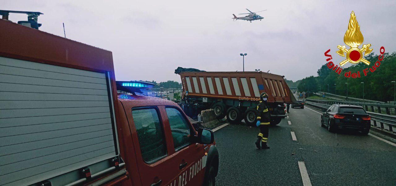 Per cause in corso di accertamento, poco dopo le 16, un mezzo pesante in transito lungo la Statale 336 in direzione Magenta ha sbandato sullo spartitraffico centrale interessando, nell’impatto, anche la carreggiata in direzione A8. Sul posto sono arrivati il personale Anas, i Vigili del Fuoco e le Forze dell’Ordine per la gestione dell’emergenza e l’accertamento della dinamica. Fortunatamente le condizioni del conducente del mezzo pesante non sono gravi, al contrario delle ripercussioni sul traffico, fortunatamente non intenso come prima dello scoppio della pandemia. La Statale è chiuda in entrambe le direzioni e sono indicati percorsi alternativi in loco