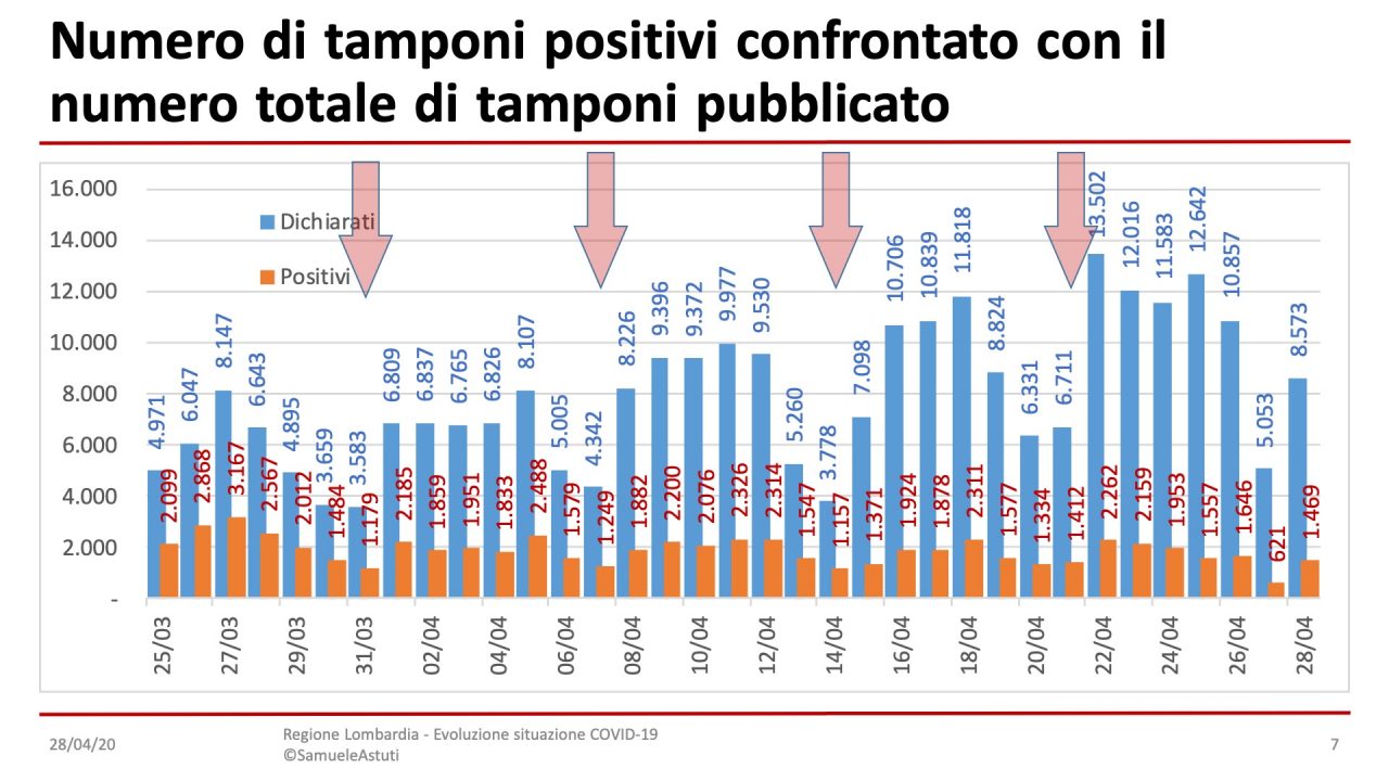 Il problema maggiore, e questo si nota soprattutto guardando alla variabilità dei dati delle singole province, riguarda come ormai noto il numero dei tamponi. Numeri altalenanti, e a causa delle ridotte capacitrà di analisi sempre “viziati” dall’accumulo di tamponi eseguiti giorni e giorni prima. Lo fa notare, nuovamente, anche il consigliere regionale Samuele Astuti nella sua analisi: