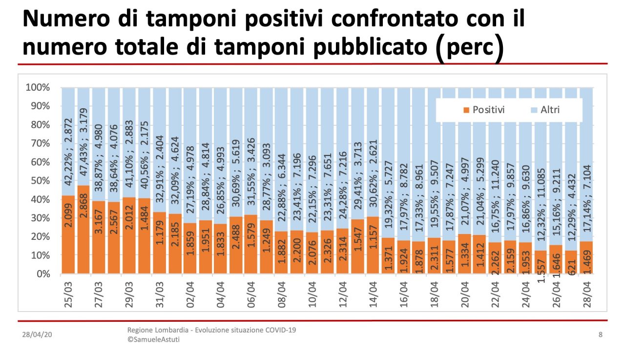 Coronavirus 28 aprile: trend stabile su tutti i fronti, sale leggermente la percentuale di tamponi positivi sul totale effettuato.