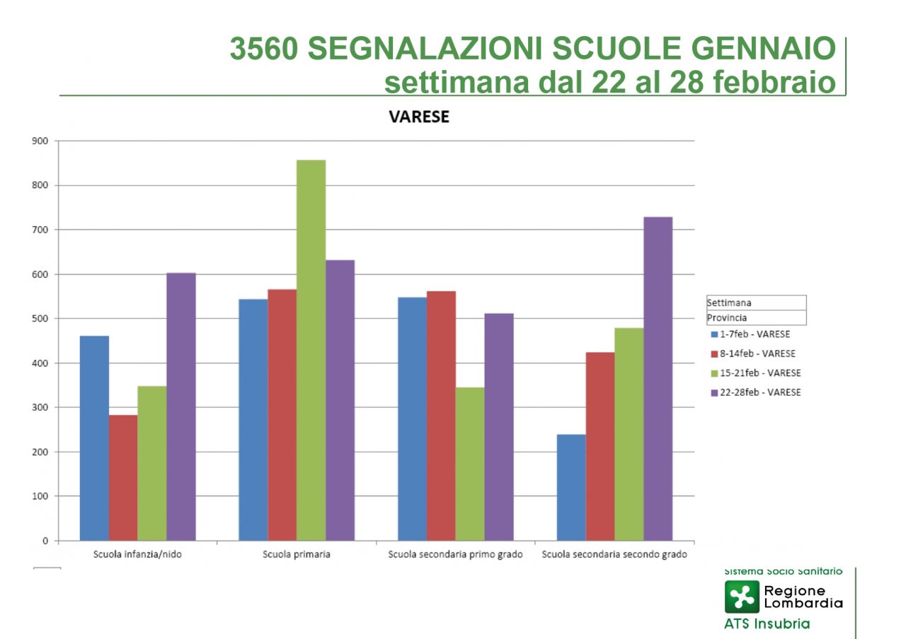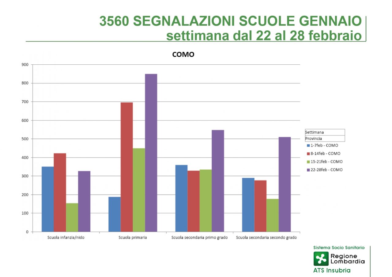 I dati delle quarantene nelle scuole non sono rincuoranti ed è probabilmente che gli studenti non torneranno in classe molto presto. Dal 22 al 28 febbraio infatti sono state registrate tra Como e Varese 4711 quarantene, con un tasso più alto nelle scuole primarie. “Confermo che le scuole, a mio parere, sono uno dei luoghi più pericolosi non tanto per la scuola in sé quanto per le aree esterne e i mezzi pubblici dove si aggregano i ragazzi. Stiamo combattendo una guerra e per fortuna nessuno di noi ha vissuto quella vera ma i miei genitori per due o tre anni non sono andati a scuola. Per uscire da questa guerra dobbiamo combattere con tutte le armi a disposizione”.“Stiamo facendo un lavoro coordinato anche con le cure primarie, preparando un nuovo piano scuola che presenteremo a tutti i responsabili Covid delle scuole – spiega Elena Tettamanzi  – Lo screening è previsto dalla Regione e dà la possibilità ai ragazzi dai 14 ai 18 anni di fare il tampone in farmacia, prenotandosi al cruscotto apposito di Regione Lombardia. Il cruscotto regionale darà gli appuntamenti e gestirà il servizio, noi continueremo l’azione di contact tracing sui tamponi effettuati nelle farmacie”.