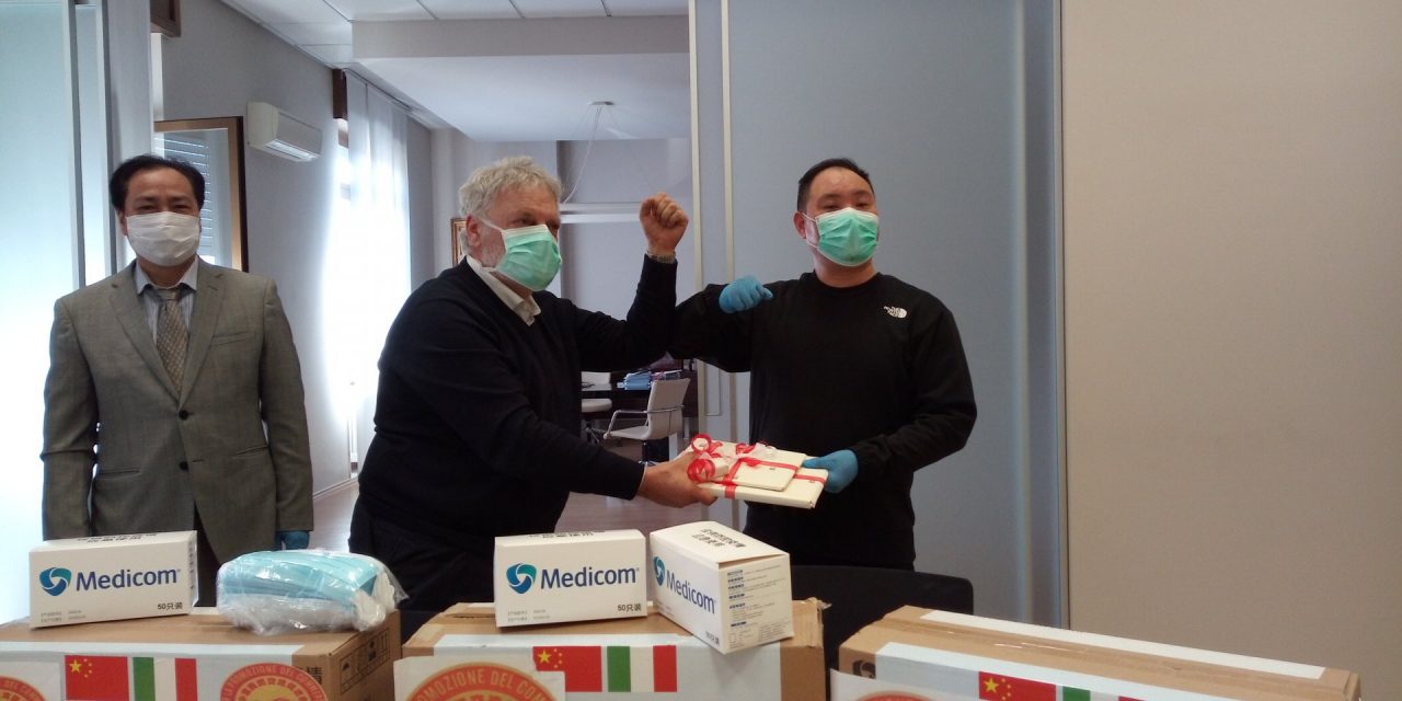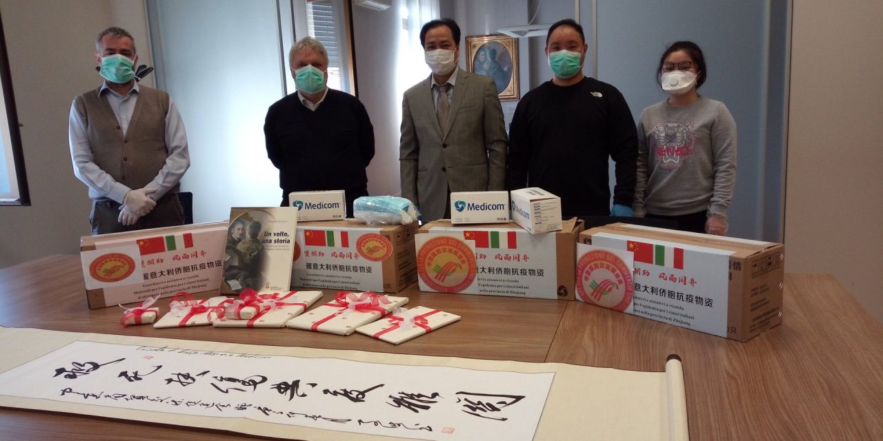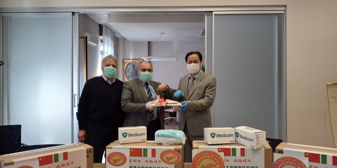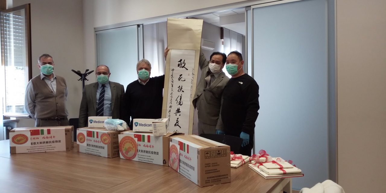 Sono intervenuti il Presidente esecutivo del gruppo Xiaochun Liu, il Past President Kepu Ma, e l’interprete Xuannan Liu. Insieme alle mascherine è stato regalato alla Direzione strategica anche un pregevole cartiglio in seta, recante una scritta in calligrafia (realizzata dal Past President Ma), il cui testo si può così tradurre: “Dove c’è difficoltà noi aiutiamo e ci teniamo stretti”.