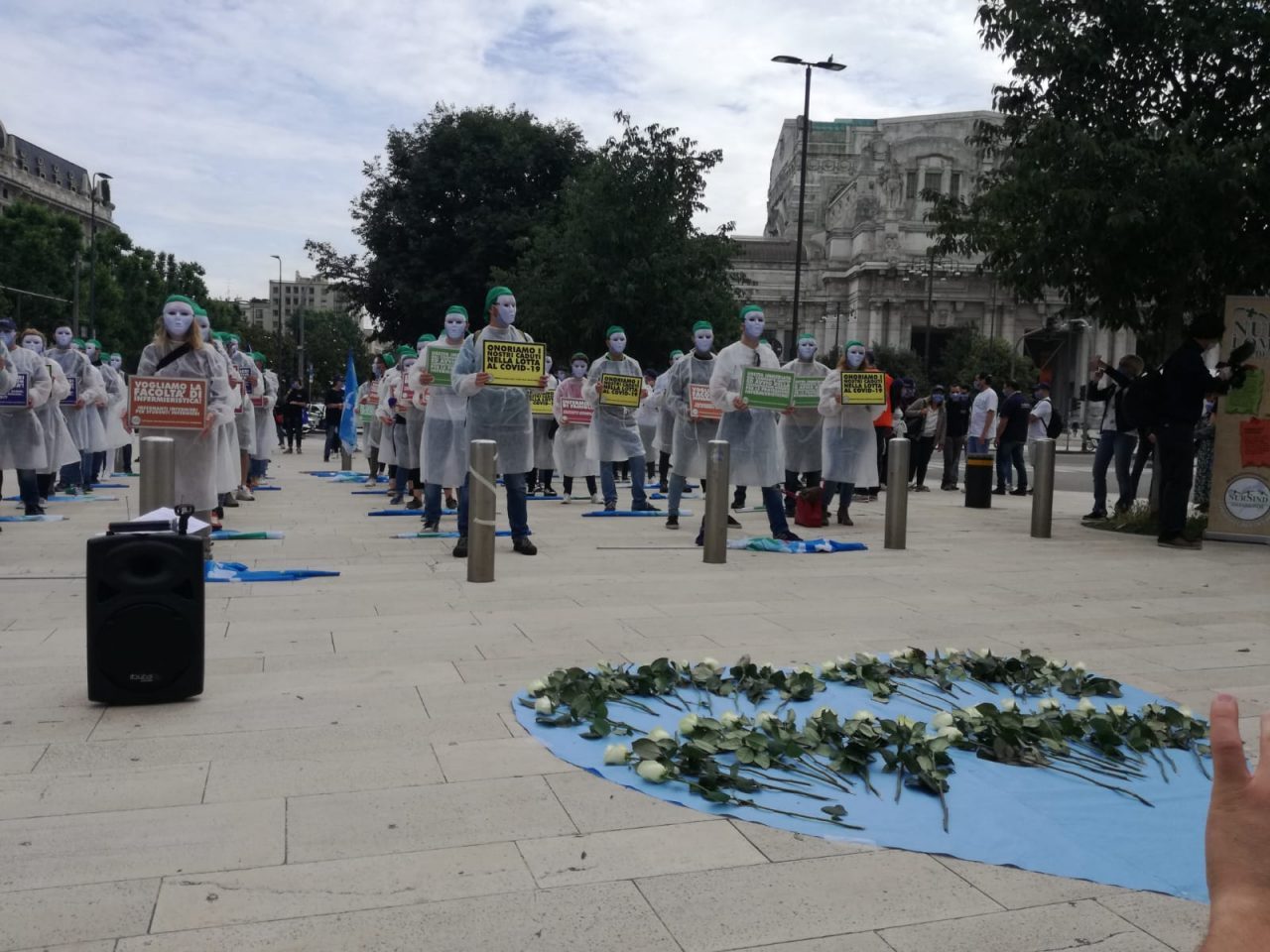 Un flash mob davanti al Pirellone per chiedere di non tornare ad essere invisibili una volta spentisi i riflettori accesi dall’emergenza Covid e per reclamare maggiore attenzione da parte delle istituzioni.  A terra, sopra un grande cuore, 40 rose bianche a rappresentare le infermiere e gli infermieri che durante l’emergenza Covid hanno perso la vita. Per loro è stato rispettato un minuto di silenzio, poi un lungo applauso per ricordare il loro impegno e il loro sacrificio. Un applauso spontaneo è venuto anche dalle persone, compresi giornalisti e fotografi, che hanno assistito alla manifestazione e hanno così voluto ringraziare questi uomini e donne che, dapprima con il volto coperto con una maschera, poi a volto scoperto tenevano in mano dei cartelli con le loro richieste alle istituzioni.