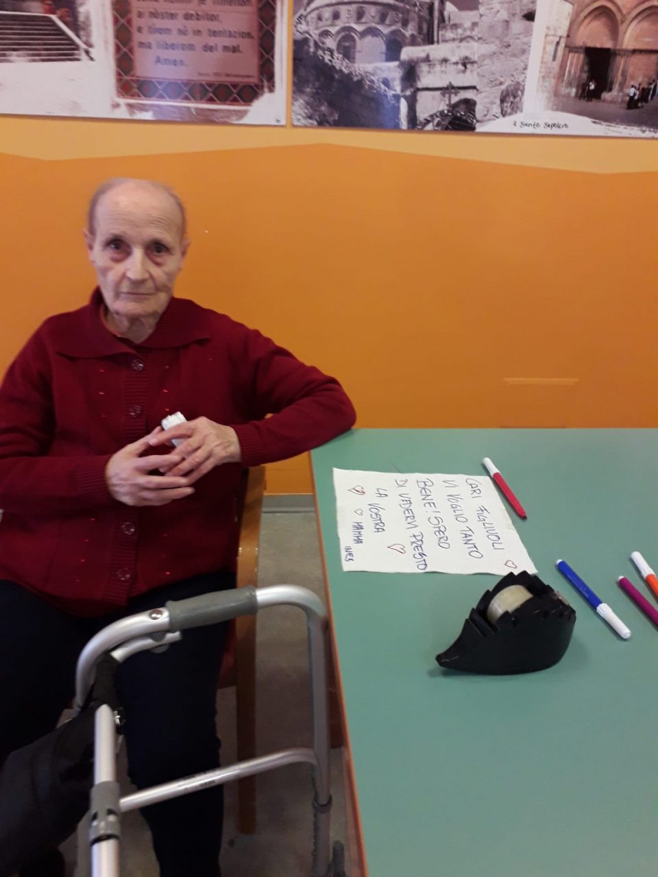Nella diretta social di oggi sono stati protagonisti Maria, 101 anni (a giugno saranno ben 102), Altavilla 98 e Sergio “il giovincello del gruppo”. Quanti ricordi dal sapore di polenta e baccalà e del gelato portato col carretto… e che costava 10 lire (o erano 30?). Con più o meno gli stessi soldi, ma qualche annetto dopo, l’infermiere Laura si comprava da bambina il ghiacciolo. Rigorosamente alla menta, certo, ma solo perché le piaceva il colore. Ancora una volta tutti da casa sono stati invitati a prendere carta e penna per segnare una nuova ricetta, quella delle fregnacce, spiegata da Altavilla.
