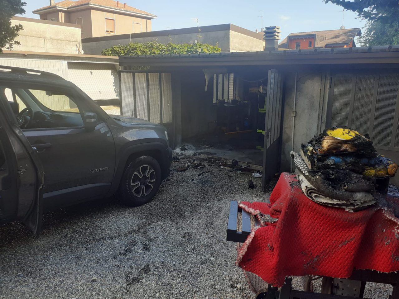 Scoppia un incendio nel box di casa e il proprietario per spegnerlo e recuperare la sua auto, una Jeep Renegade, si ustiona e finisce in ospedale.