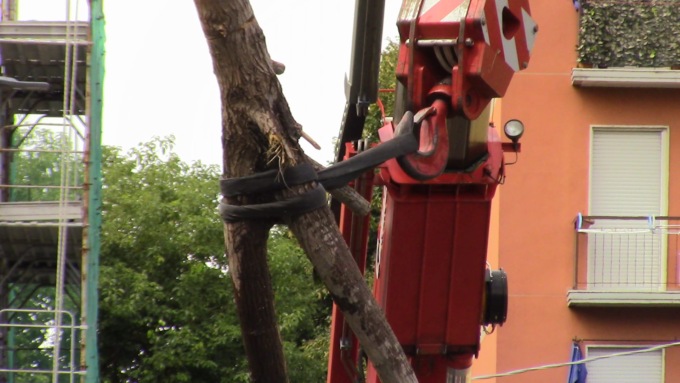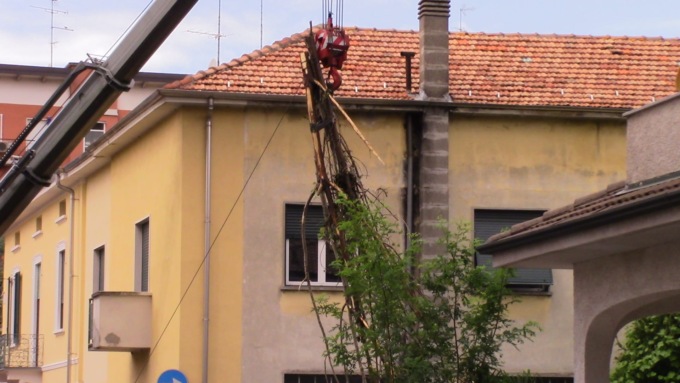 Pianta nel Lura, arrivano i Vigili del fuoco con una gru