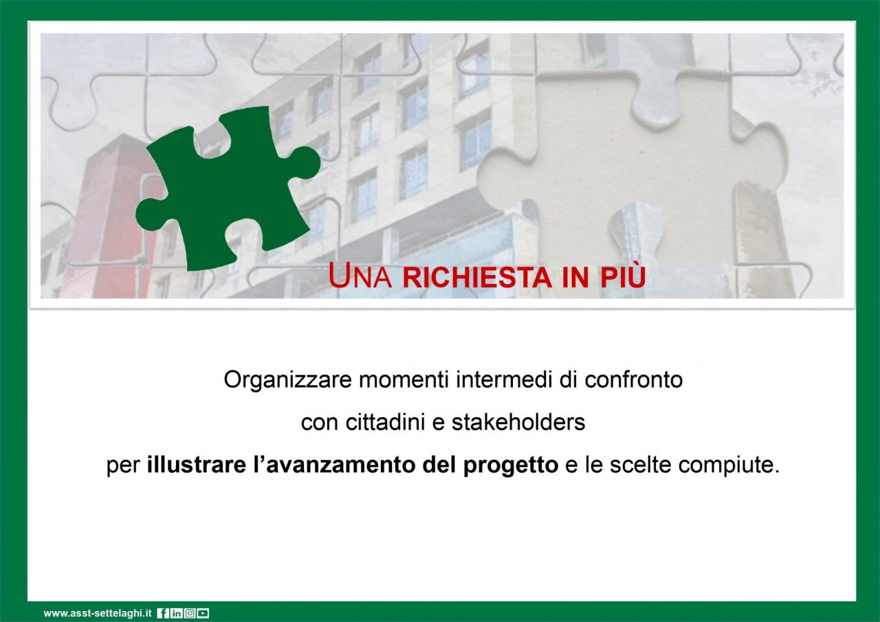 Il cantiere, ha spiegato l’ingegner Roberto Guarnaschelli, Responsabile del Procedimento, partirà ad autunno 2022 per una durata complessiva di 30 mesi ma con rilasci parziali man mano che le singole lavorazioni saranno terminate. “Durante i lavori è prevista l’organizzazione di incontri periodici con gli stakeholders (Comune di Varese, rappresentanze del personale e degli utenti, associazioni di volontariato, ecc) per relazionare sullo stato avanzamento lavori.”