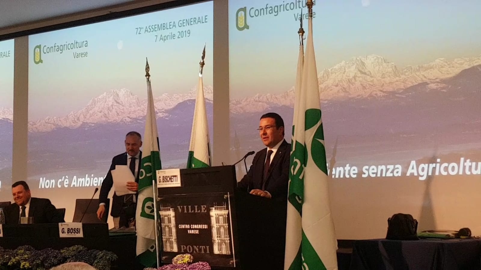 “Non c’è ambiente senza agricoltura”. Questo il titolo, e il tema centrale, della 72esima Assemblea Generale di Confagricoltura Varese. Appuntamento che anche quest’anno come nelle edizioni precedenti, ha saputo attirare i nomi della politica nazionale e locale: Tra i presenti infatti non sono mancati i Sottosegretari di Stato Giancarlo Giorgetti e Stefano Candiani, il presidente della regione Lombardia Attilio Fontana, i consiglieri regionali Emanuele Monti e Samuele Astuti e il consigliere provinciale Marco Magrini.