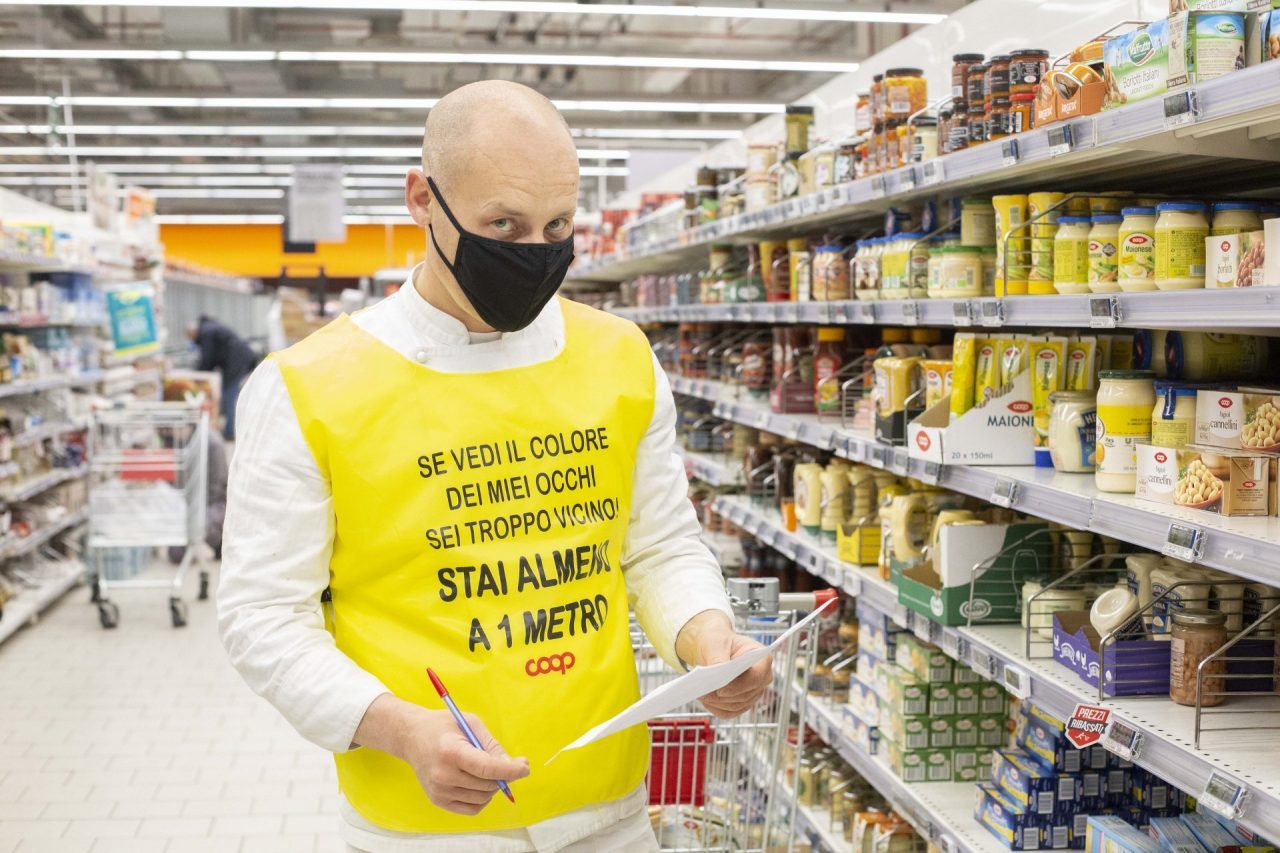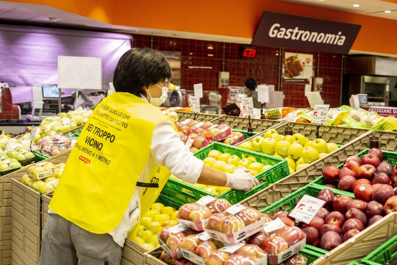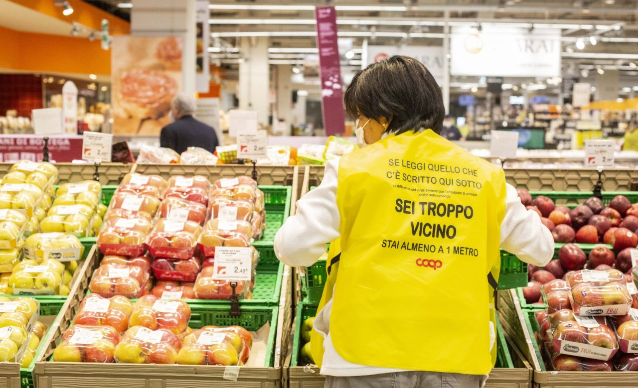 Da sabato i dipendenti Coop nelle aree vendita indossano una pettorina per ricordare la distanza sociale raccomandata.