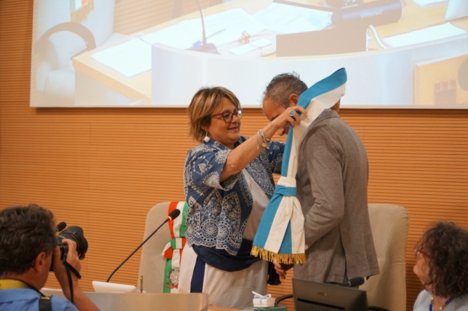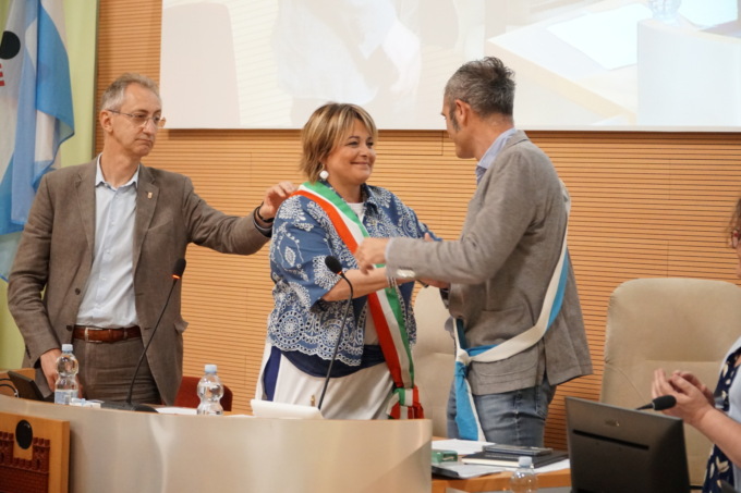 Emozione e abbracci nel momento di indossare la fascia tricolore e l’impegno a “mettercela tutta con umiltà, determinazione e spirito di servizio”, invitando i cittadini a “sentirsi parte di questo percorso, perché la città è di tutti e si costruisce passo dopo passo” e, in particolare ai giovani la promessa di avere “uno sguardo attento ai vostri bisogni” e l’apertura all’ascolto.