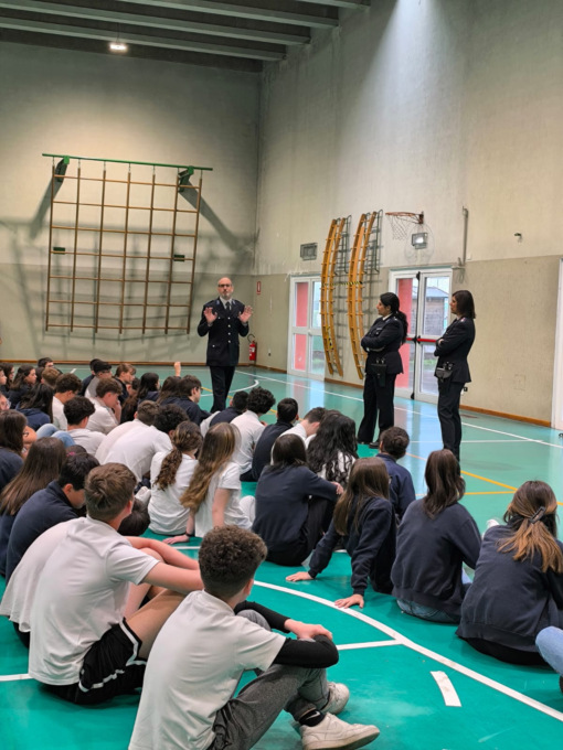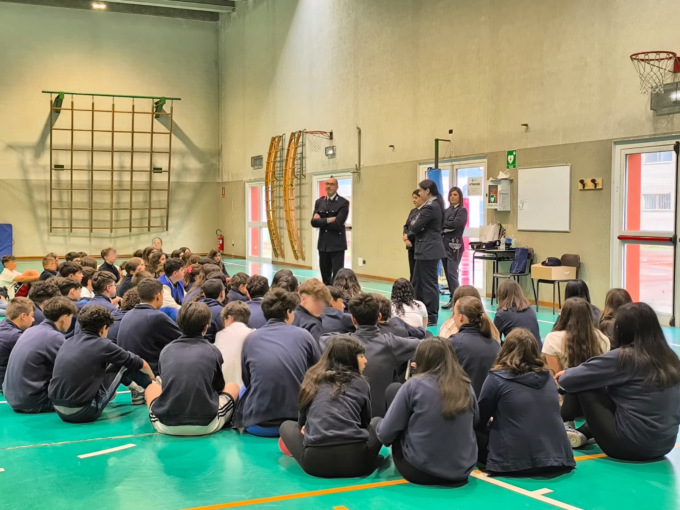 L’altra mattina, 4 unità di operatori di Polizia Penitenziaria, coordinate dalla Dirigente Comandante di reparto, Emanuela Anniciello, hanno incontrato i ragazzi di tutte le 12 classi della secondaria di primo grado, dalle prime alle terze, riunite a turno nella palestra della scuola, per una lezione speciale. Gli agenti hanno fornito ai ragazzi una serie di indicazioni riguardanti i comportamenti corretti da tenere e soprattutto quelli scorretti da evitare, indicando anche le conseguenze che certi atteggiamenti sbagliati possono comportare.