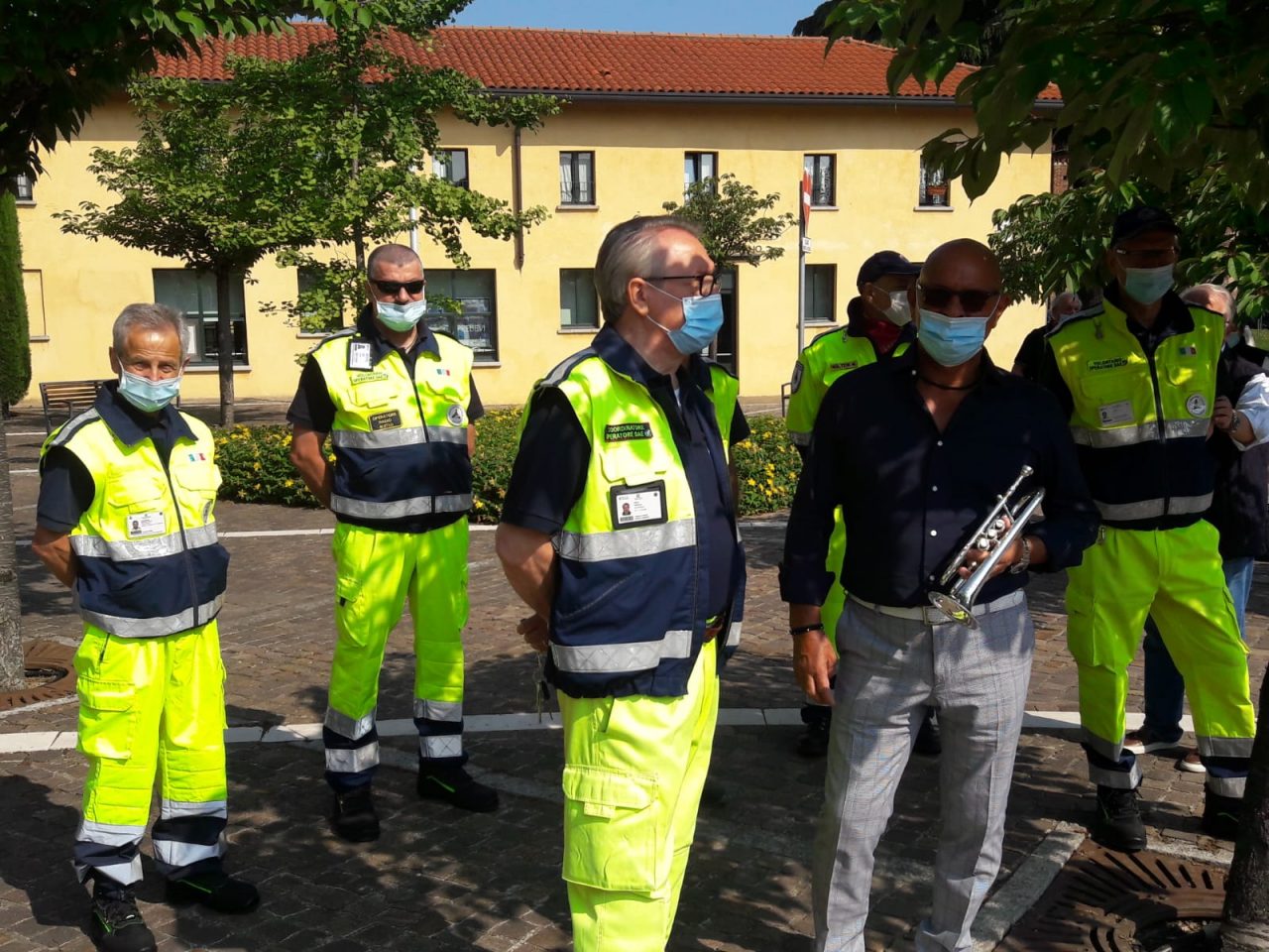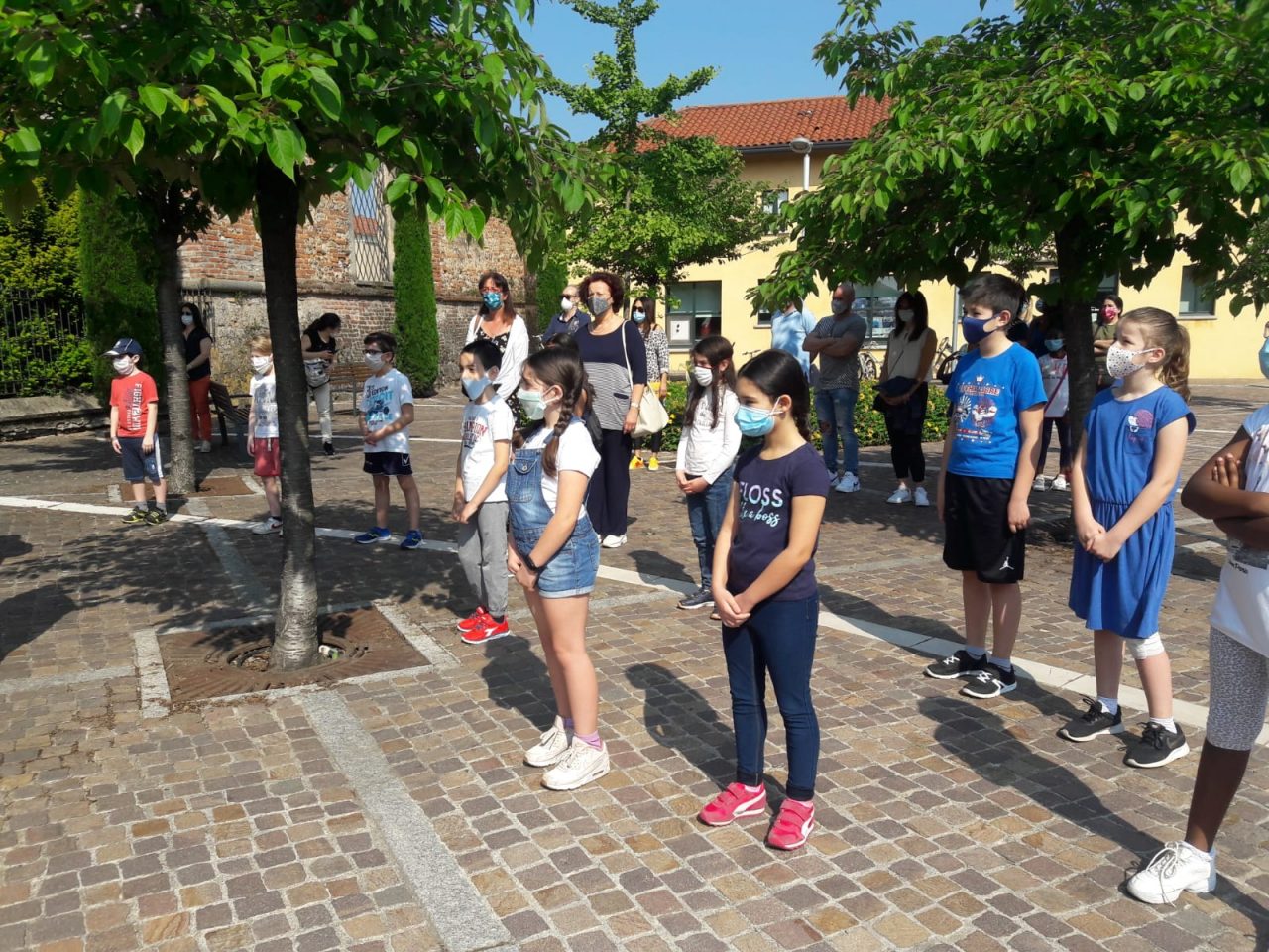 Il coronavirus non ha fermato la celebrazione del 2 giugno a Cislago. Stamattina, davanti al monumento oltre al sindaco Gian Luigi Cartabia e l’Amministrazione al completo, c’erano anche il parroco don Maurizio Restelli, il maresciallo Duma, il presidente della banda Gianpiero Morandi, i presidenti di alpini, bersaglieri e paracadutisti, il presidente della ProLoco, la delegazione della Croce Rossa e il presidente dell’associazione d’arma Combattenti e Reduci. A sorpresa, in piazza anche le scuole con i ragazzi della 3B e le loro insegnanti che non hanno voluto mancare alla ricorrenza, caduta durante la giornata di saluto organizzata al parco della Repubblica.